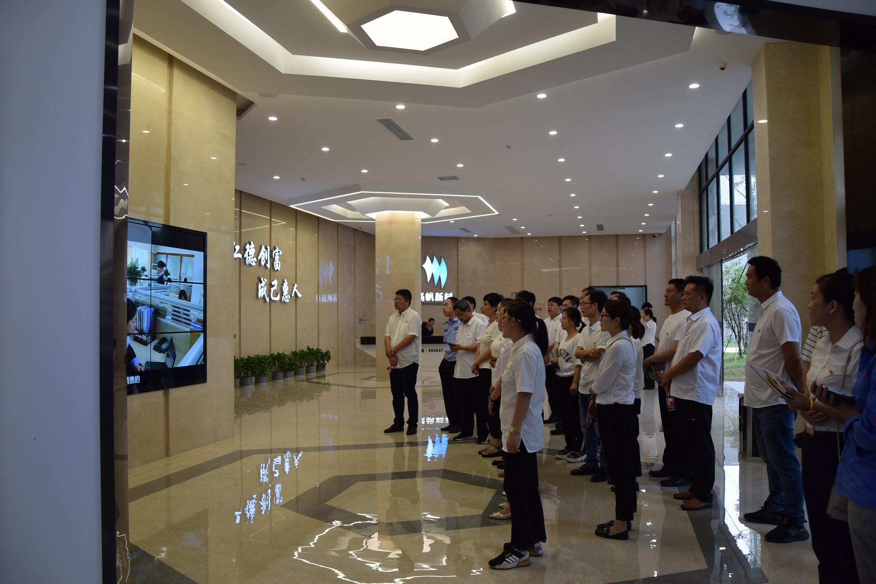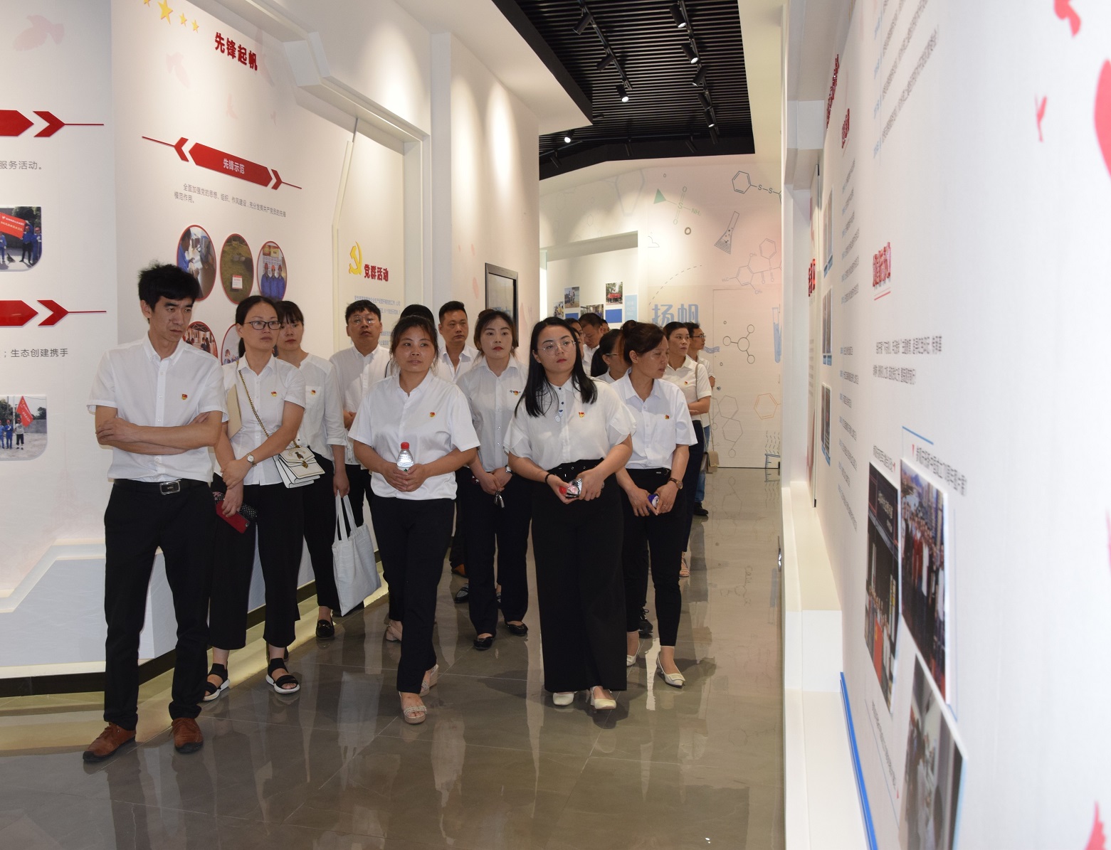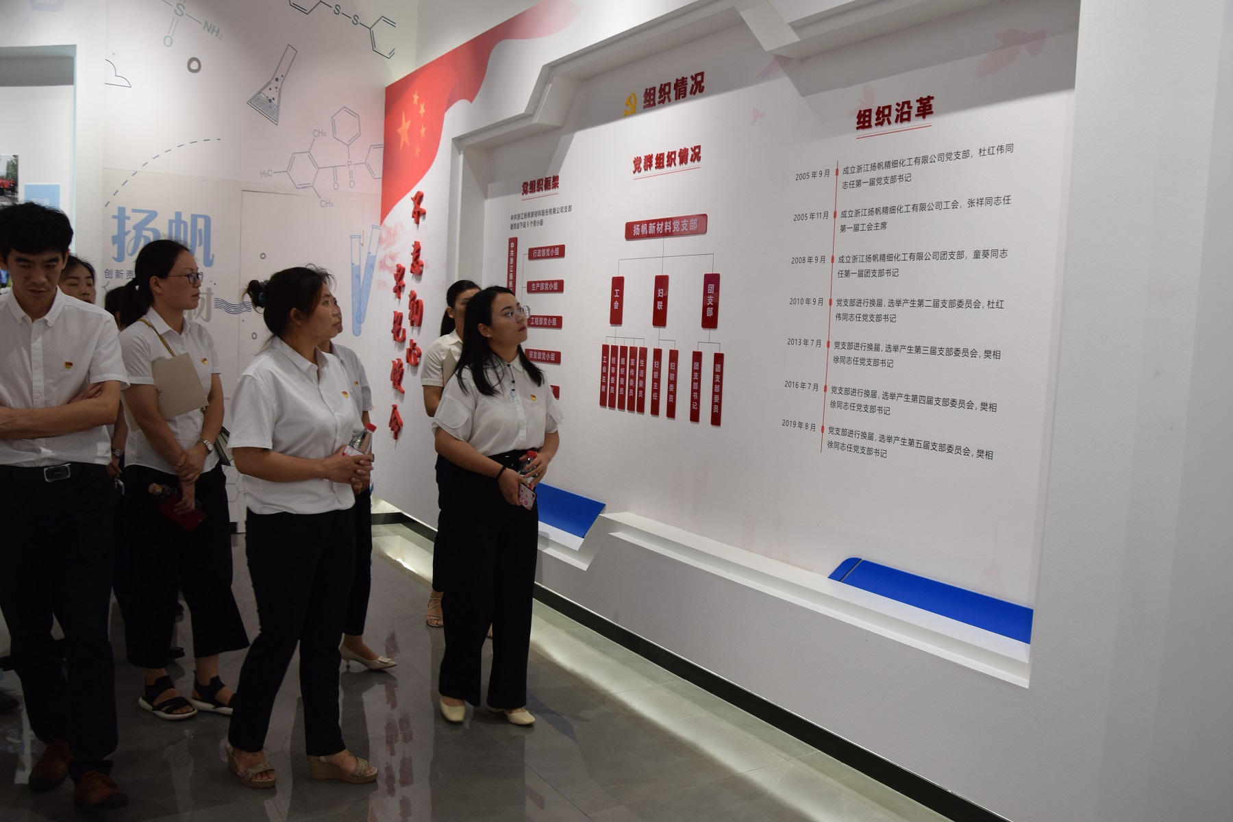 在建黨99周年來臨之際,為增強黨員政治意識,堅定理想信念,7月1日上午,杭州灣綜管辦領(lǐng)導(dǎo)帶領(lǐng)34名新發(fā)展黨員來到上虞生產(chǎn)基地參觀揚帆黨建展廳。公司黨支部書記樊相徐參與接待工作并分享了黨建工作體會。